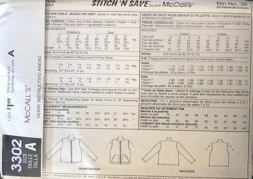 Mccall S Sewing Pattern 3302 Childs Jacket Vest Sz 3 4 5 6 Uncut Ff Ebay
